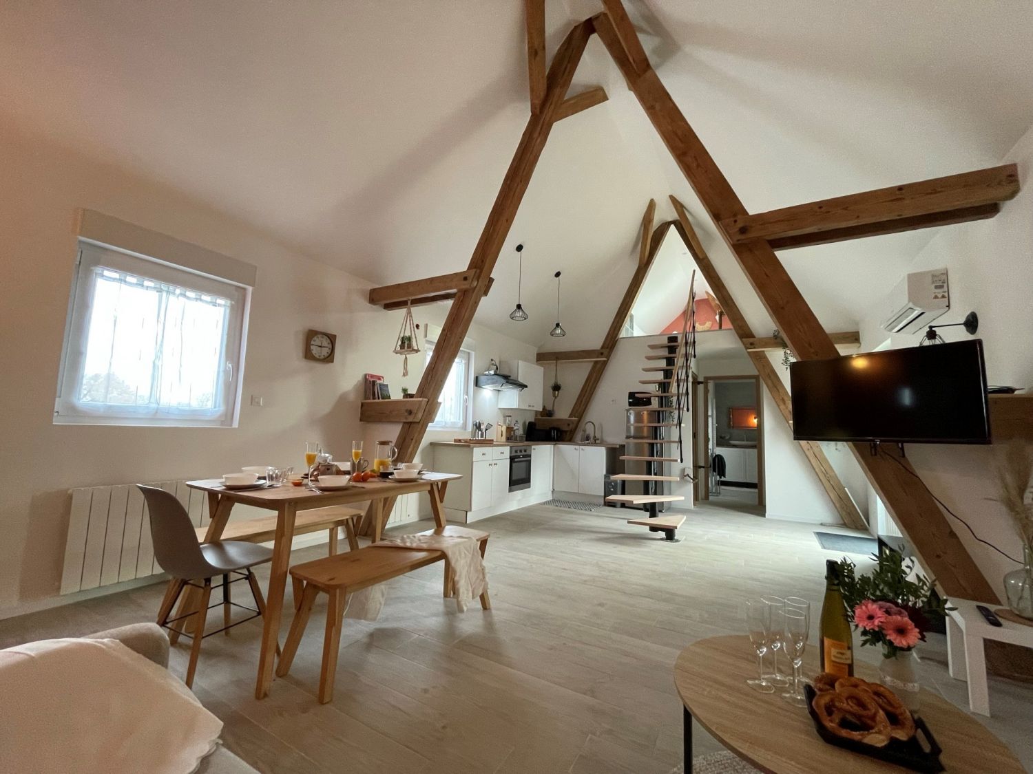 Cuisine entièrement équipée : machine à café Senseo, grille pain, bouilloire, etc...